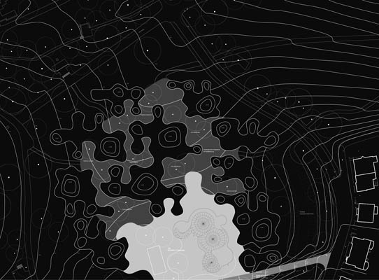 Landschaftsplanerischer Wettbewerb zur Umgestaltung einer historischen Parkanlage in Wuppertal. Während die historische Parkgestaltung die ausgeprägte Topografie aufgriff und übersteigerte, geht der in Kooperation mit der Landschaftsarchitektin Sandra Bartoli konzipierte Garten von der Vorstellung einer “Reaktion” der Landschaft aus. Das Schaugewächshaus der Architekten wird dabei als neues Element - als Katalysator - betrachtet, das in dem Gelände eine topografische Bewegung erzeugt. /